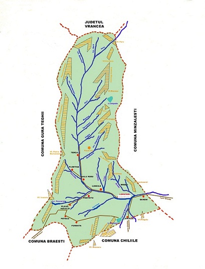 Asezată în zona montană a judeţului Buzău, din Subcarpaţii Curburii, în depresiunea Lopătari, pe Valea Slănicului, afluent al Râului Buzău, relieful comunei este reprezentat de dealuri înalte, cu altitudini cuprinse între 400 si 1000 de metri, acoperite de verdele crud al pădurilor de foioase si în mică masură de conifere, oferind un cadru natural de excepţie.